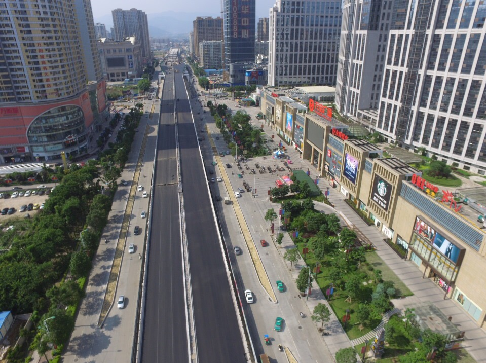 龍巖大道高架橋項(xiàng)目為省、市重點(diǎn)建設(shè)項(xiàng)目,是龍巖中心城市連接南北、溝通新老城區(qū)的重要樞紐,項(xiàng)目位于龍巖市南北交通中心軸和景觀軸線龍巖大道上,全長3395m,包含橋梁和地面道路兩大部分,其中橋梁工程總長2329m,橋?qū)?6m,包含一座190+150m獨(dú)塔斜拉索鋼箱梁主橋(主橋?qū)?6.3m),全線設(shè)計(jì)為雙向六車道,設(shè)計(jì)車速60km/h,在西陂路及人民路處各設(shè)置上下匝道,跨越雙洋路、羅龍東路、人民路、登高西路、西陂路城市主干道,項(xiàng)目總投資約24億元。