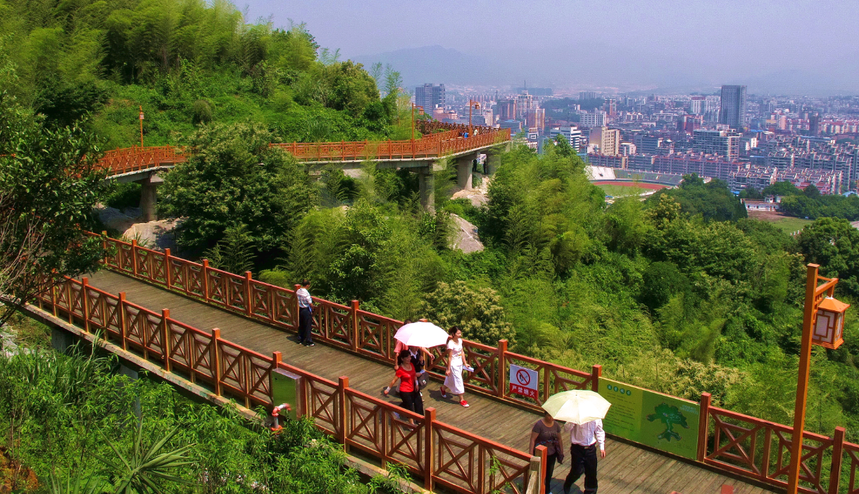 蓮花山底南環(huán)路地面標(biāo)高為330米,山頂標(biāo)高為490.606米,山高160米左右,山頂已開(kāi)發(fā)為休閑場(chǎng)所,并建有世紀(jì)鐘樓,山腳可挖掘的景點(diǎn)不多,因此決定在半山腰開(kāi)辟一條市民休閑的木棧道,將公園增加一個(gè)休閑觀光的好場(chǎng)所,并可成為蓮花山一道亮麗的風(fēng)景線。因此在半山腰422米高程建設(shè)一條環(huán)山的木棧道。為盡量少破壞山體植被,木棧道采用棧道橋形式,全長(zhǎng)3781.88米,全寬3.5米(包括欄桿寬度),凈寬3.0米,蓮花山棧道橋工程總投資7610萬(wàn)元。