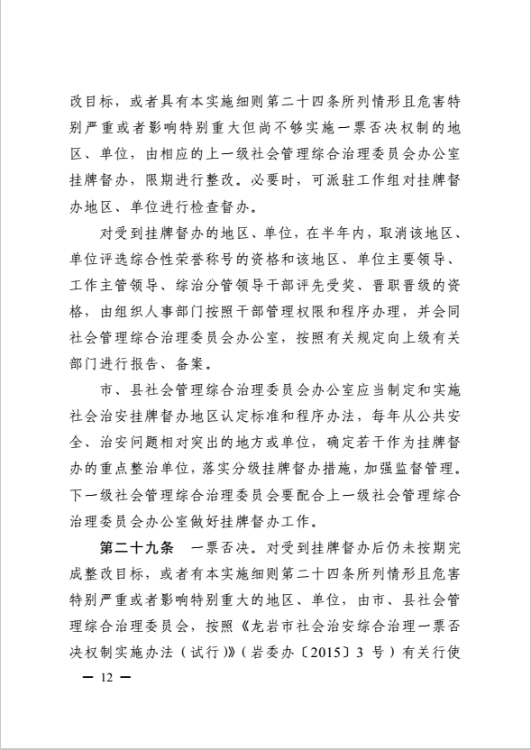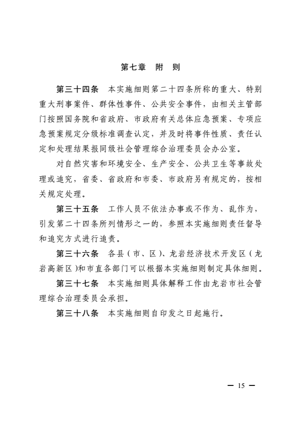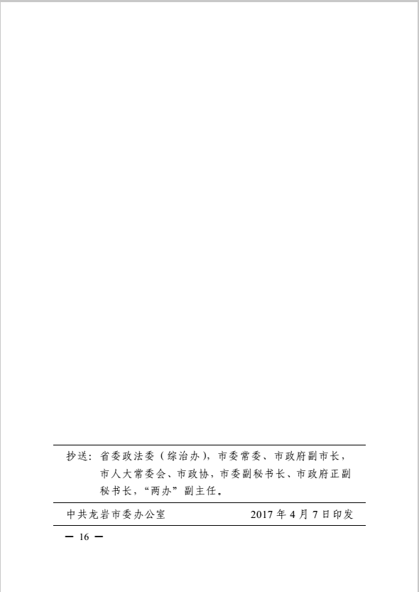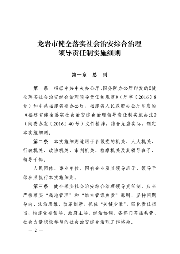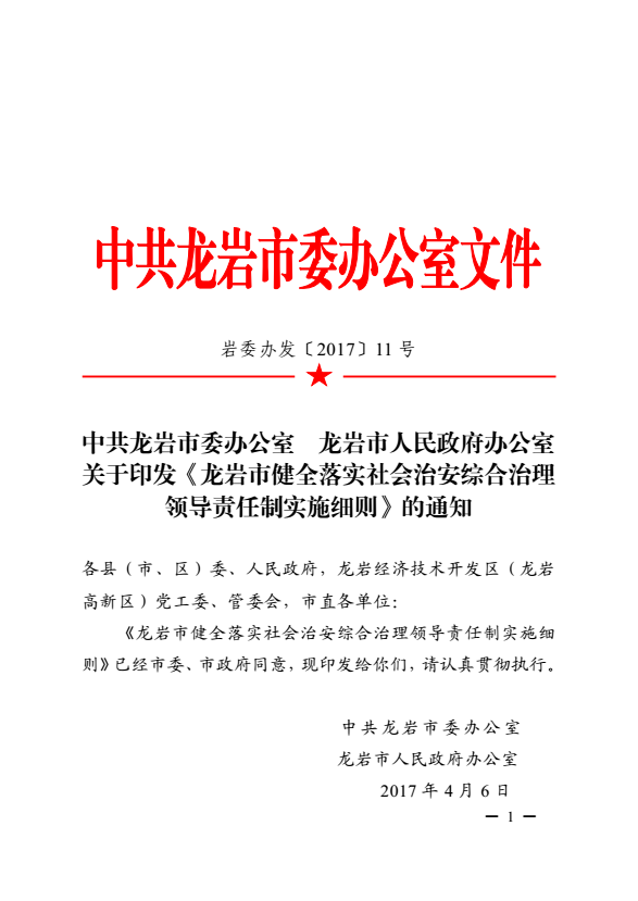 龍巖市健全落實(shí)社會(huì)治安綜合治理領(lǐng)導(dǎo)責(zé)任制實(shí)施細(xì)則(巖委辦發(fā)【2017】11號)