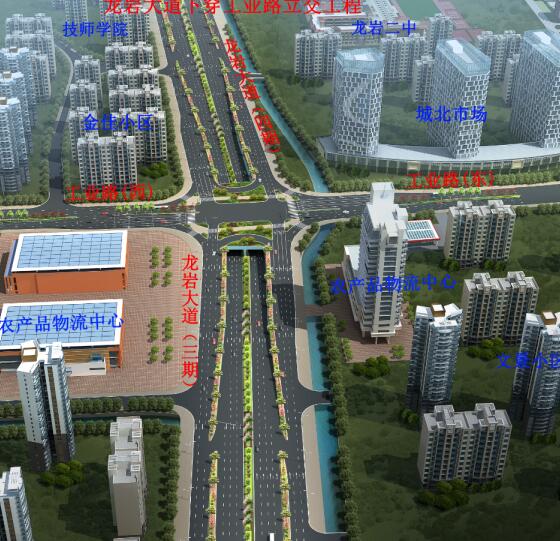 龍巖大道工業(yè)路下穿通道項目位于龍巖大道與工業(yè)路交叉口,為現狀龍巖大道三期道路上設置下穿通道,起始于規(guī)劃支路農產品物流配送中心路口,終止于龍巖大道四期龍巖第一技師學院東側,全長383米,其中框架涵長度80米,U型槽長度303米,地道凈寬2×13米,雙向六車道。主通道兩側設置兩道南北向人行地下通道,人行通道斷面型式:5×3.5米,主通道長124米,梯道長128米,總投資約2億元。