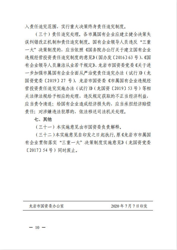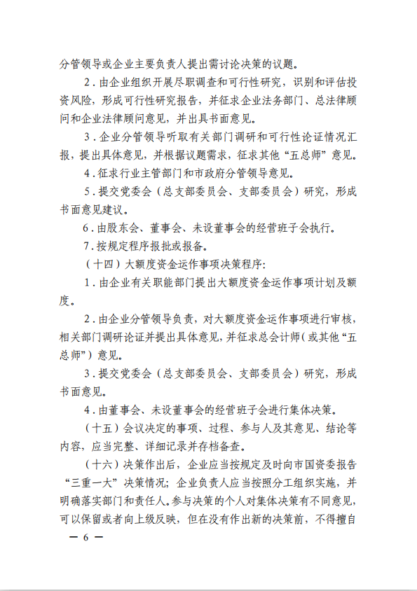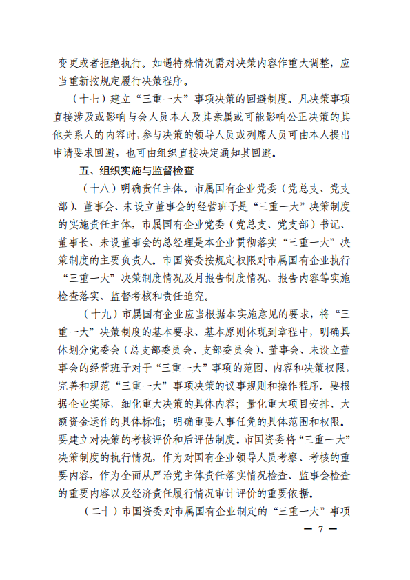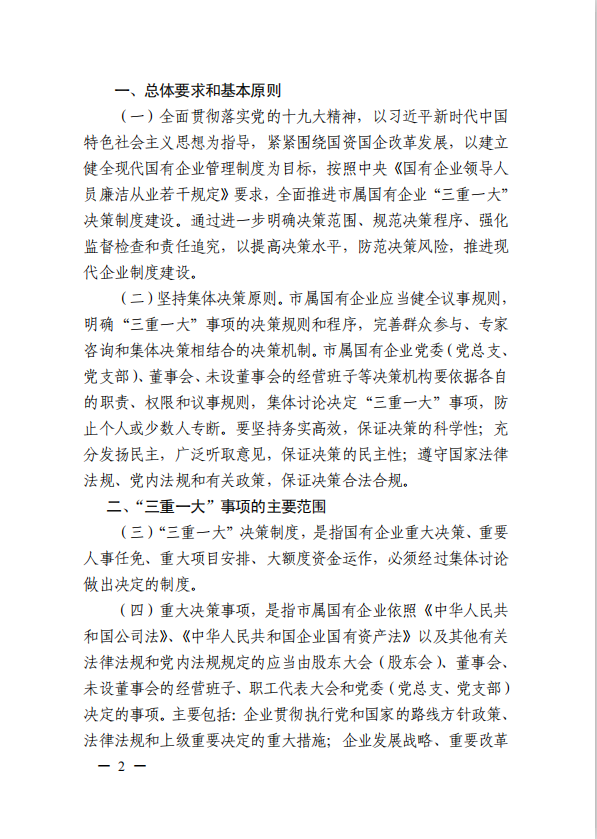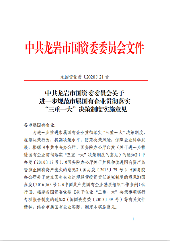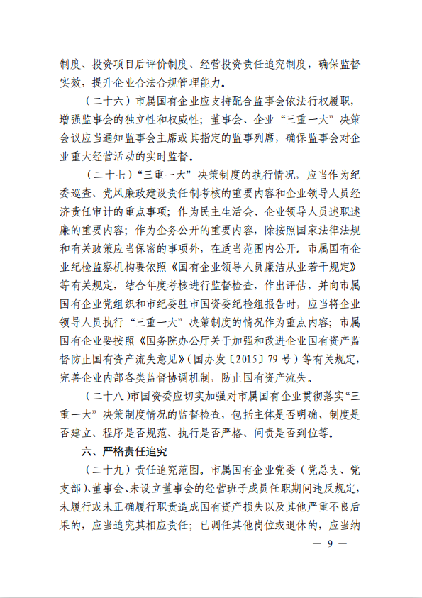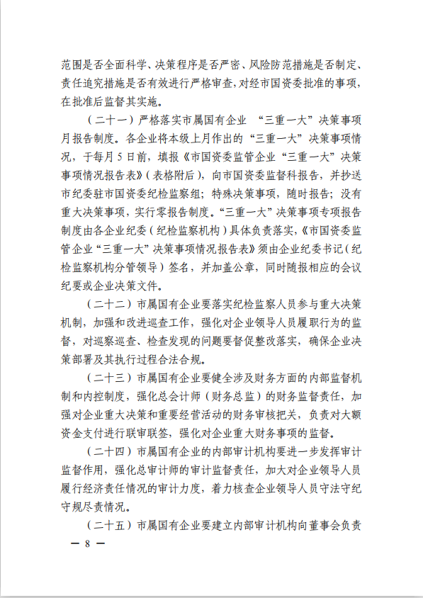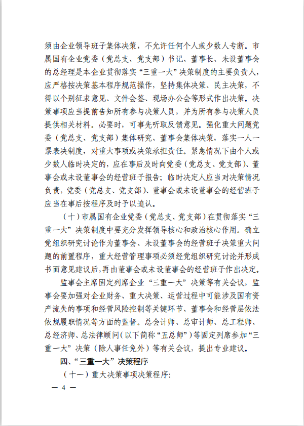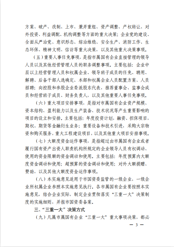 關(guān)于進(jìn)一步規(guī)范市屬國有企業(yè)貫徹落實(shí)“三重一大”決策制度實(shí)施意見(國資黨委[2020]21號(hào))