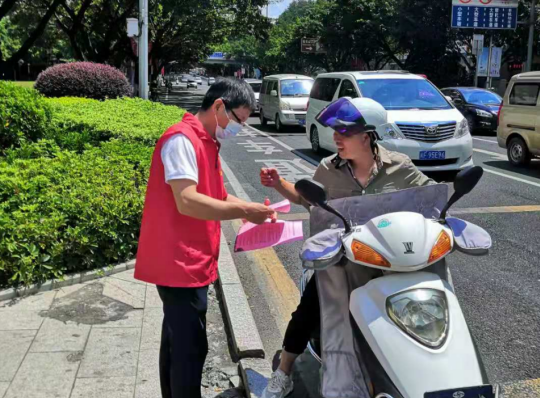 八月末,天氣炎熱,市政集團(tuán)的志愿者們身著紅馬甲,不畏臟、不怕累,各司其職,分時段分批次在蓮新社區(qū)范圍內(nèi)開展創(chuàng)城活動,其中清潔崗的志愿者們帶著夾子、掃帚、垃圾袋等清掃工具,對街道路面的紙屑、塑料袋、煙頭等生活垃圾進(jìn)行清掃,將亂停亂放的自行車整齊的排列在停車位上,使得街道整潔一新。宣傳崗的志愿者們走進(jìn)商鋪,發(fā)放文明宣傳標(biāo)語,動員商鋪店主一起,注意門前三包,在平時營業(yè)工作中,遇到不文明行為時,進(jìn)行及時規(guī)勸,讓市民自覺遵守,規(guī)范自身行為,積極踐行“共創(chuàng)共享”的創(chuàng)城理念,共同為創(chuàng)建文明城市出一份力。交通崗的志愿者們通過積極引導(dǎo)道路交通,向過往行人科普創(chuàng)城溫馨小知識,加強城市文明建設(shè)。